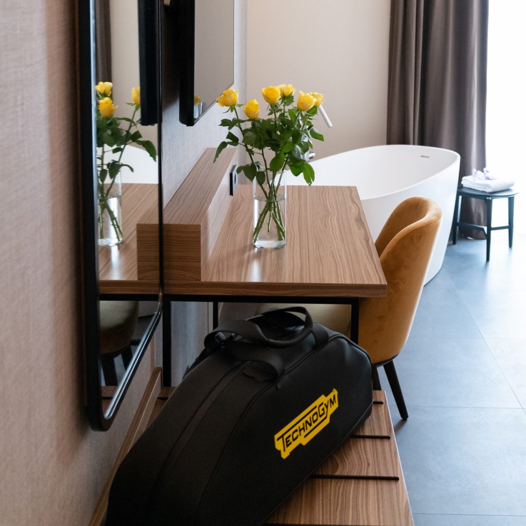 Le camere Wellness dedicate a chi ama prendersi cura di sé anche in viaggio. Qui ci si può rilassare nella baignoire o mantenersi in forma grazie alla Technogym Bench o alla borsa Technogym Case Kit dotata di ogni accessorio per il fitness. Ideale per coppie che cercano una sistemazione romantica o il viaggiatore business che vuole prendersi cura di sé anche durante le trasferte di lavoro.